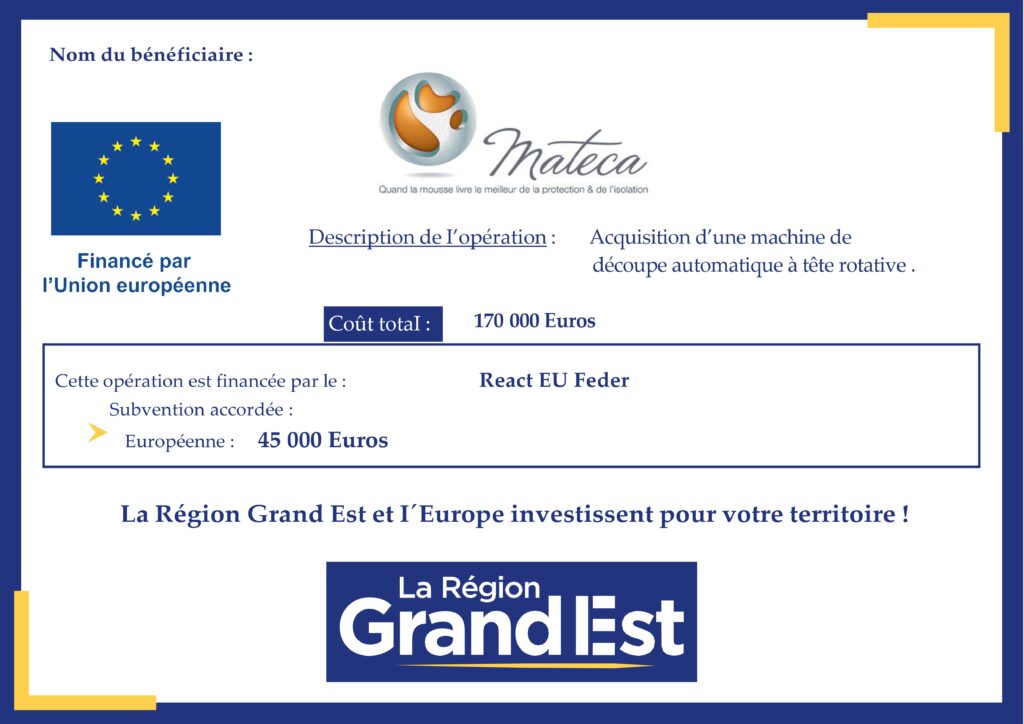 Entreprise familiale créée en 1986 à Haguenau (Bas-Rhin), MATECA estspécialisée dans la transformation de mousses PU, PE, agglomérées, Ethafoam,EPDM, laine de verre ou laine de roche.Depuis le début de l’activité MATECA à sans cesse investit Lire la suite